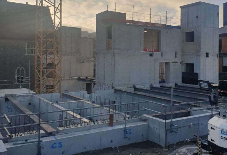 Basement, Ground floor and Cores over 3no floors. Extremely logistically challenging project where all deliveries planned ‘just in time’ due to limited storage on site. We safely constructed a three storey lift and stair core using specially procured lightweight shutter panels as there was no crane on site.